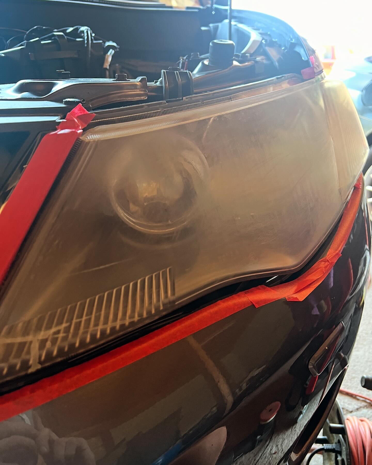 Při silnější oxidaci - zažloutnutí se plast světel přebrousí ve více krocích brusným papírem – s použitím vhodné zrnitosti a lubrikace, aby nedošlo k poškození povrchu.Po zbroušení do matna se povrch důkladně odmašťuje a následně se leští – od hrubé až po dokončovací pastu, dokud světla nezískají maximální jas.Jakmile jsem s výsledkem spokojený, je nutné povrch chránit před UV zářením, působením chemikálií a dalšími vlivy. K tomu používám vhodnou ochranu podle typu svetlomětů a přání zákazníka.Například syntetický sealant má výdrž přibližně 6 měsíců – v praxi to znamená, že světla zůstanou v zrenovovaném stavu zhruba 10–12 měsíců v závislosti na povětrnostních podmínkách a četnosti mytí.Při použití keramické ochrany se doba účinku prodlužuje až na 3 roky.Alternativou je i aplikace čiré ochranné fólie s životností kolem 6 let. Je to sice dražší varianta, ale bezpečnější než bezbarvý lak, který časem praská a odlupuje se – a tím komplikuje případnou další renovaci.